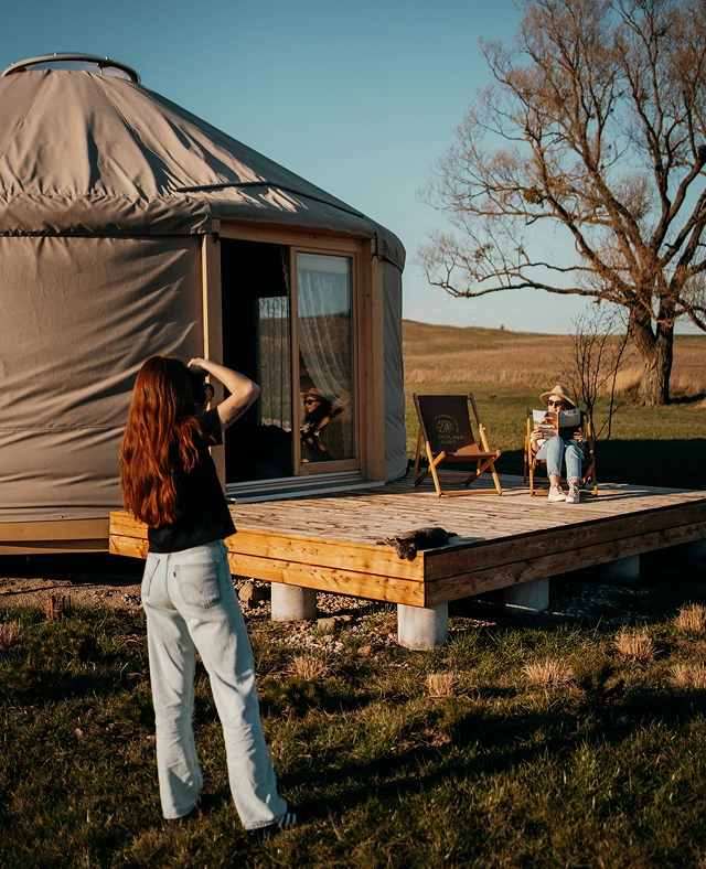 Glamping to komfortowe spędzanie czasu w naturze. Nasze jurty mają łazienki, ogrzewanie i kuchnie, ale jednocześnie pozwalają poczuć bliskość przyrody – usłyszysz śpiew ptaków, deszcz na dachu i szum wiatru.