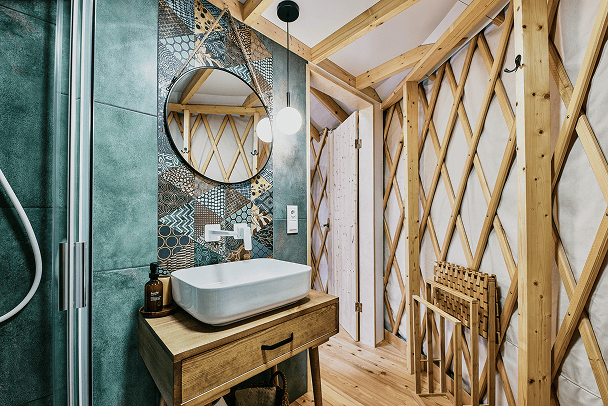 Glamping to komfortowe spędzanie czasu w naturze. Nasze jurty mają łazienki, ogrzewanie i kuchnie, ale jednocześnie pozwalają poczuć bliskość przyrody – usłyszysz śpiew ptaków, deszcz na dachu i szum wiatru.