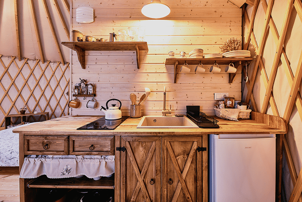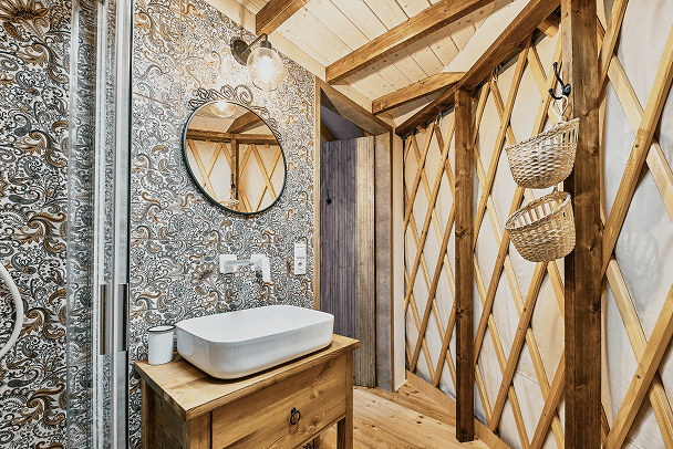 Glamping to komfortowe spędzanie czasu w naturze. Nasze jurty mają łazienki, ogrzewanie i kuchnie, ale jednocześnie pozwalają poczuć bliskość przyrody – usłyszysz śpiew ptaków, deszcz na dachu i szum wiatru.