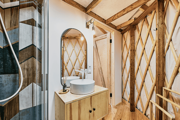 Glamping to komfortowe spędzanie czasu w naturze. Nasze jurty mają łazienki, ogrzewanie i kuchnie, ale jednocześnie pozwalają poczuć bliskość przyrody – usłyszysz śpiew ptaków, deszcz na dachu i szum wiatru.